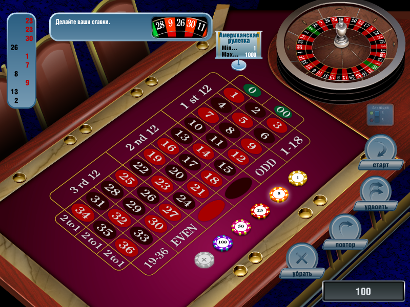 Бесплатная Американская рулетка онлайн с двумя зеро на колесе
