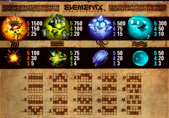 Компания-разработчик Net Entertainment решила порадовать своих поклонников ещё одним красочным и современным автоматом Elements, в который можно играть бесплатно. Ей это вполне удалось! Игровой аппарат на интерес произвёл неизгладимое впечатление на гемблеров. По своему сюжету и оформлению он чем-то напоминает автомат Evolution. Также их объединяет опция Avalanche или Лавина. Привычные вращения барабанов отсутствуют, вместо этого символы падают сверху. Выигрышная комбинация зачисляется к очкам multiplier и пропадает, а на её место падают новые символы.