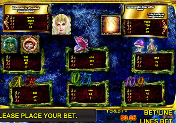 Дикий символ соответствует теме игры, его по праву заняла Королева Фей, изображение ее чудесного личика может поучаствовать в других комбинациях. Если она связала между собой выигрышную линию, она мило подмигивает счастливчику. И так если на барабанах появилось пять ее изображений, Ваша ставка увеличивается в 9000 раз, это джек-пот.