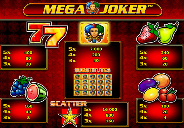 Символом разброса или скаттера в игровом автомате Mega Joker является изображение звезды. Помните что в отличие от дикого знака, он не заменяет нужные картинки, зато появление его в любом месте экрана дает увеличение прибыли. Звёздочка принесёт вам удачу, в случае если на экране их пять, они увеличат общую ставку в 400 раз, четыре штуки в 20 и три в 4.