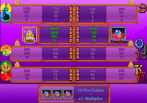 Именно стеклянный шар стал символом разброса в аппарате Magic Princess, три и более символа запускают серию из 15 бесплатных вращений барабанов, с коэффициентом выигрыша 3, что порой приносит астрономические суммы. Пять этих символов умножат общую ставку в 500 раз. Четыре изображения шара даст возможность на увеличение ставки в 20 раз. Три символа оповещают о повышении численности кредитов в 5 раз. Два изображения хрустального шара повышают ставку в 2 раза. Интересной игры!
