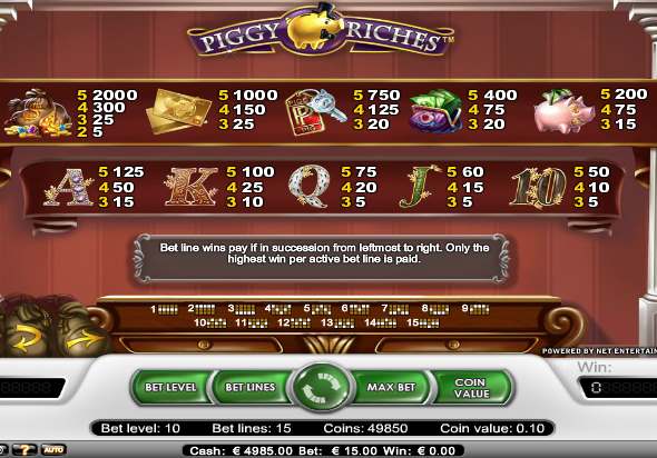Аппарат «Богатство свинок» работает по стандартной схеме: 5 барабанов и 15 линий выплат.