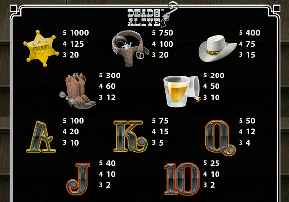 Наиболее дорогостоящим символом, которым вас порадует слот Dead or Alive онлайн без регистрации, является Скаттер - картинка с двумя скрещёнными револьверами. Три и больше Скаттера запускают серию бесплатных спинов и умножают выигрыш. Пять Скаттеров увеличат выигрыш в 2500 раз!